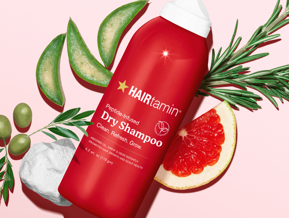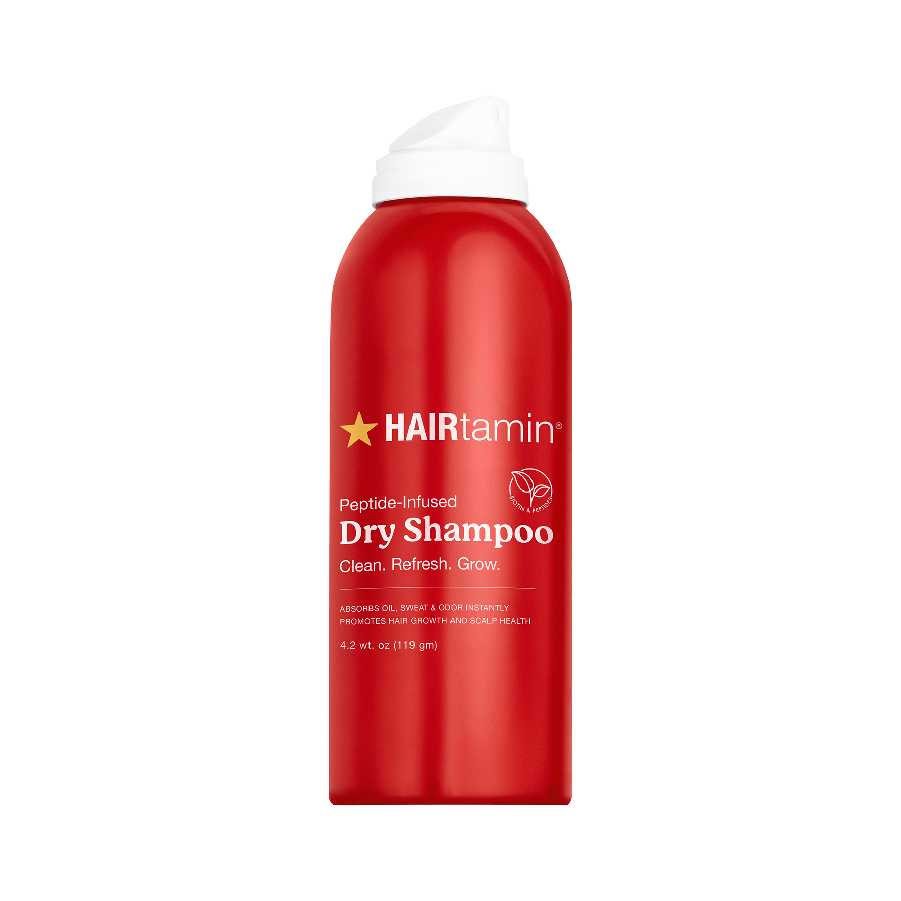 Hit refresh between washes with HAIRtamin® Peptide-Infused Dry Shampoo, a growth-boosting formula powered by peptides to help nourish the scalp and promote stronger, fuller-looking hair. This lightweight, plant-based spray instantly absorbs excess oil, revives roots, and adds volume without leaving behind heavy residue or buildup.